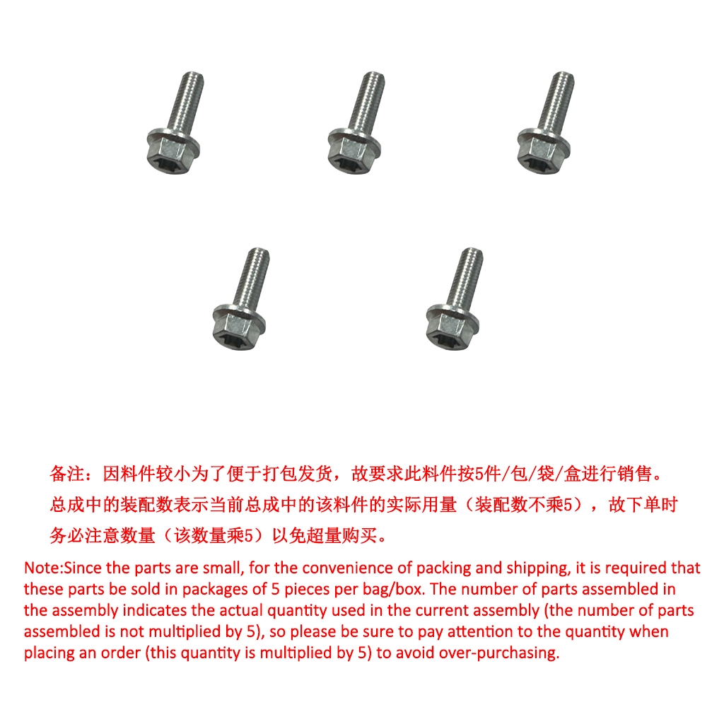 5. Hexagonal Small Flanged Internal Star Bolt M5×16 (Grade 9.8 /environmental color Zinc)(5 pcs/after-sale)